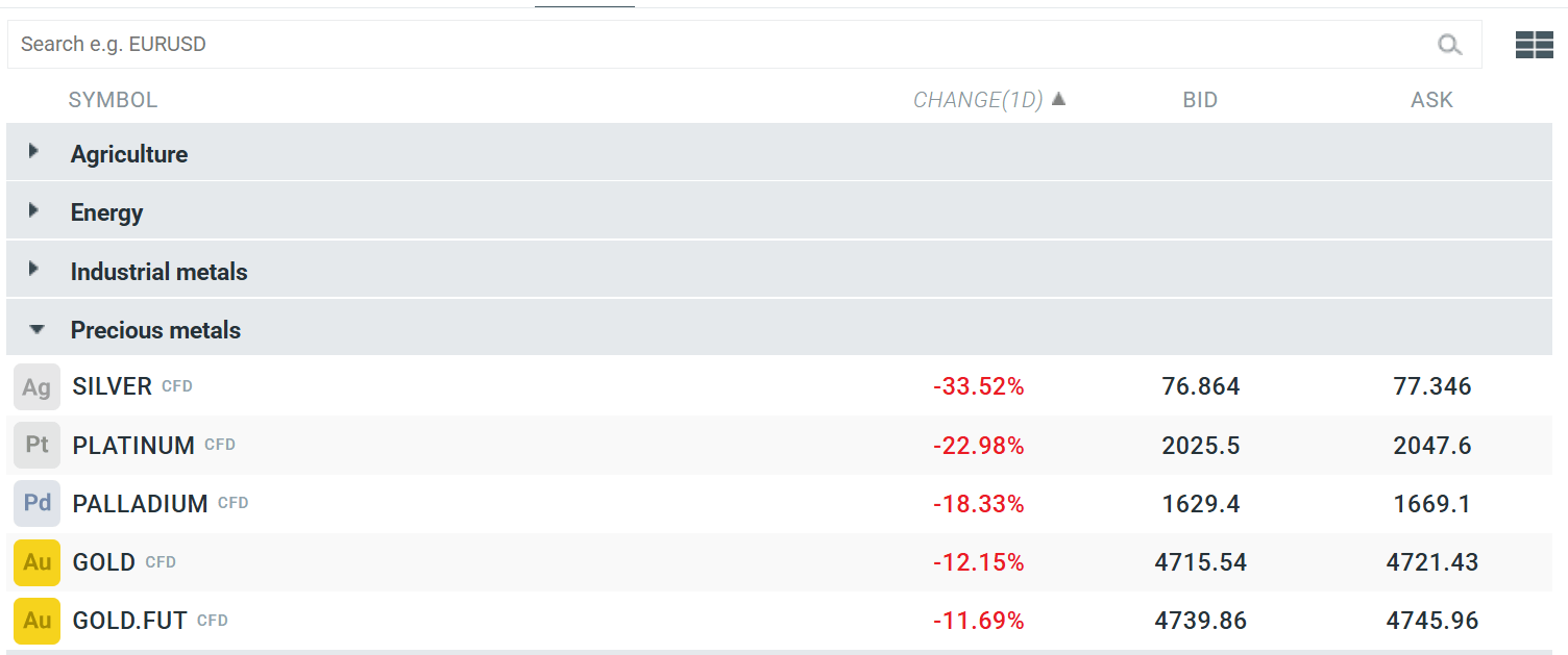 Podsumowanie dnia: Historyczny dzień metali szlachetnych; SILVER traci 33% 💡