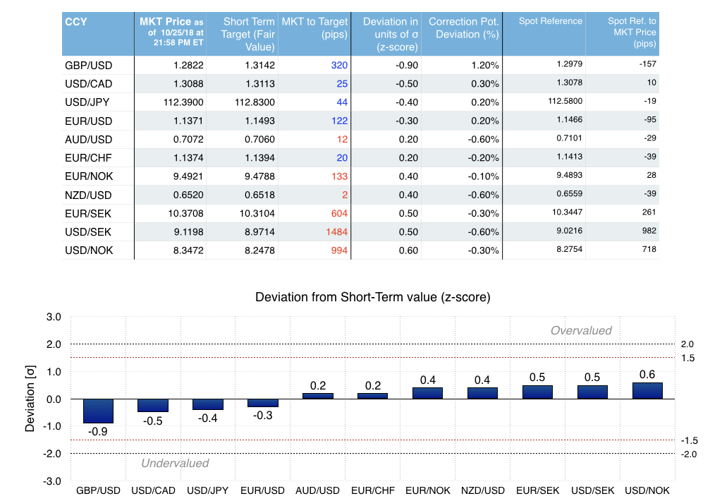 Pod koniec zeszłego tygodnia model SEB nie wygenerował żadnych konkretnych sygnałów ilościowych wskazując jedynie na możliwe lekkie niedowartościowanie GBPUSD. Źródło: eFXPlus