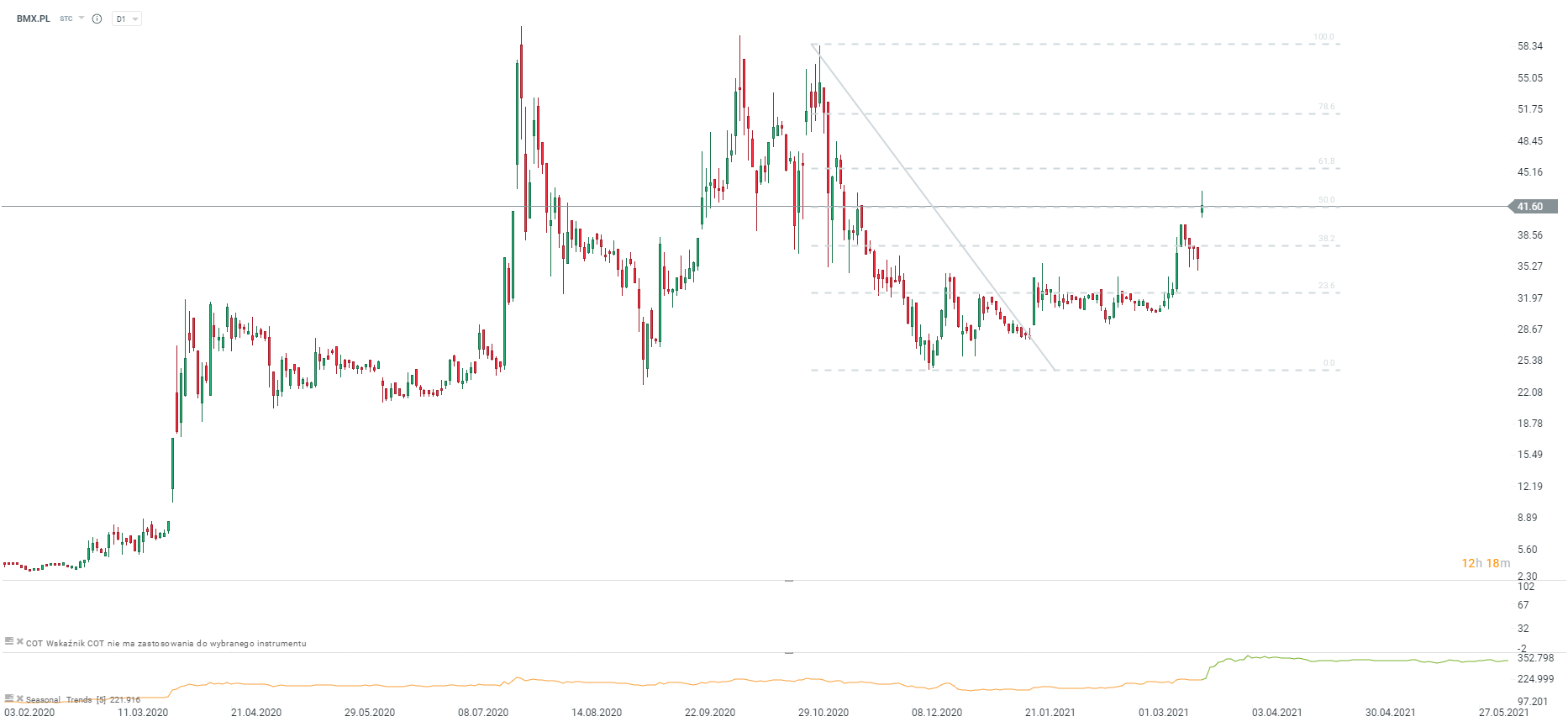 Kurs BioMaxima skoczył o ostatniej serii spadków i notowany jest w okolicach 50% ostatniej dużej fali spadkowej. Źródło: xStation5