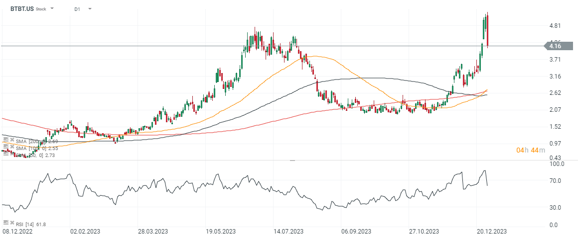 Akcje BitDigital (BTBT.US), interwał H1/D1