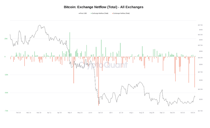 Historycznie zjawisko znikajacych Bitcoinów z giełd było pozytywnym zwiastunem, sygnalizującym niechęć do sprzedaży przez 'wieloryby', które wycofują tokeny na zewnętrzne portfele. Byki naprawdę uwierzyły w dołek Bitcoina?