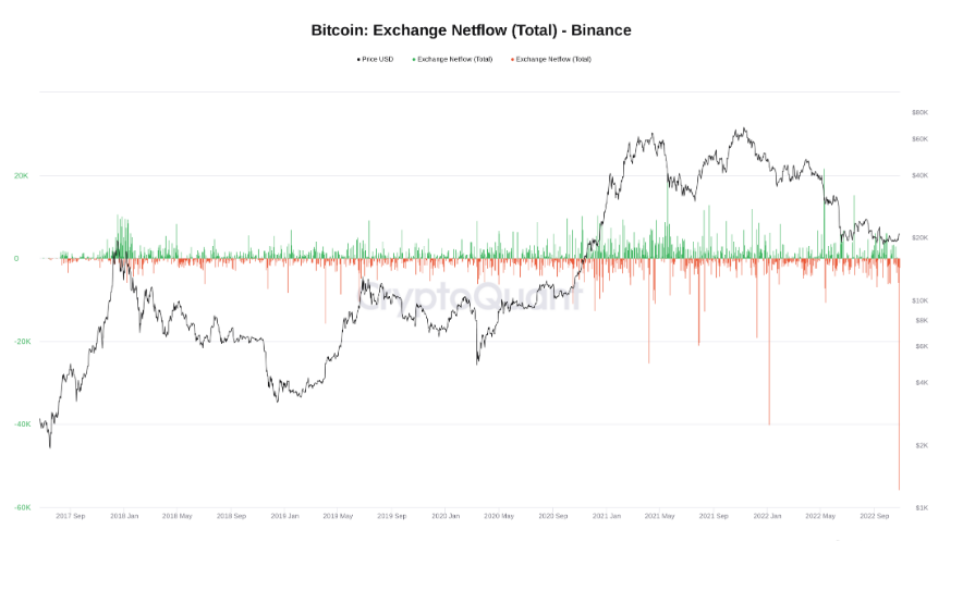 Z największej na świecie, kryptowalutowej giełdy Binance wycofanych zostało rekordowe 55 tys BTC, wartych ok. 1,1 mld USD. Ilość ta jest największa w całej historii giełdy. Skala odpływów pobiła dołek z czerwca, gdy Bitcoin kosztował 17 600 USD oraz krach covidowy z marca 2020 roku. Źródło: CryptoQuant