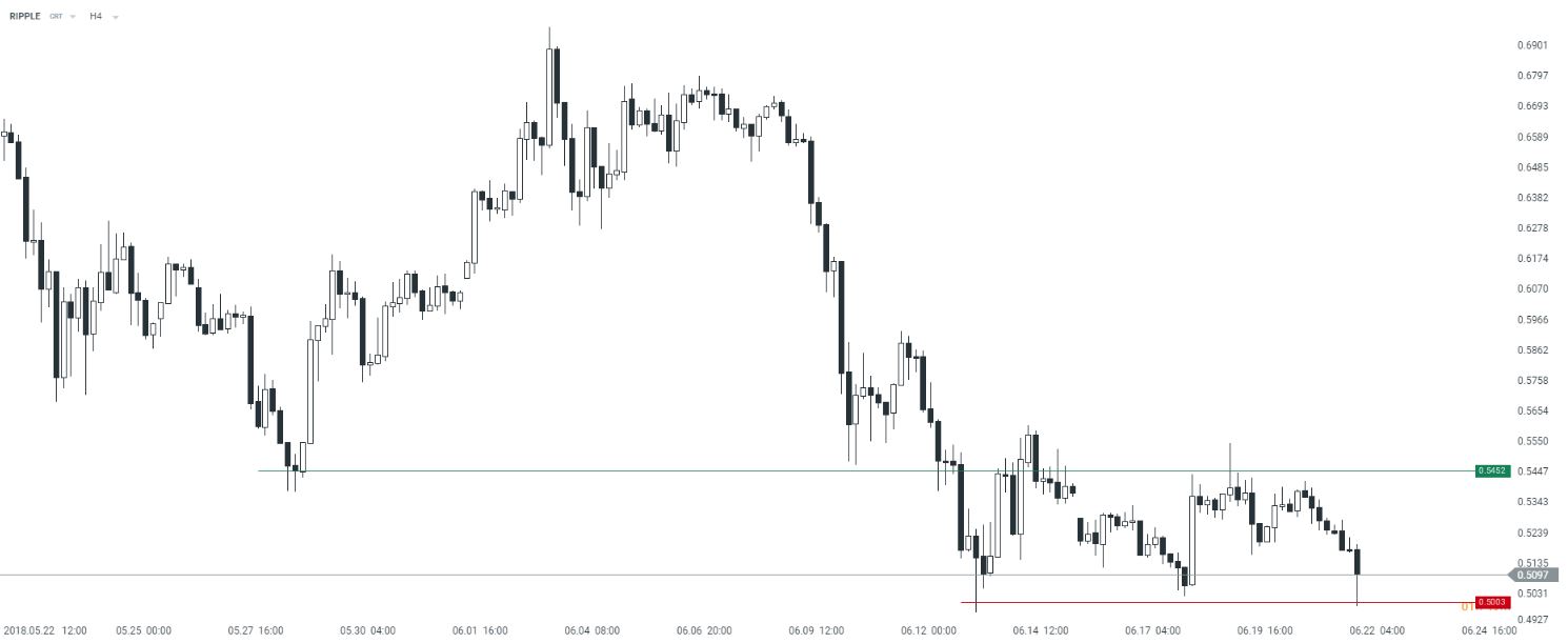 Podczas gdy inne kryptowaluty tracą, Ripple zaczyna wykazywać oznaki odbicia od dolnego ograniczenia konsolidacji. Górne granice tej kosnolidacji to okolice poziomu 0,55 USD. Źródło: xStation5