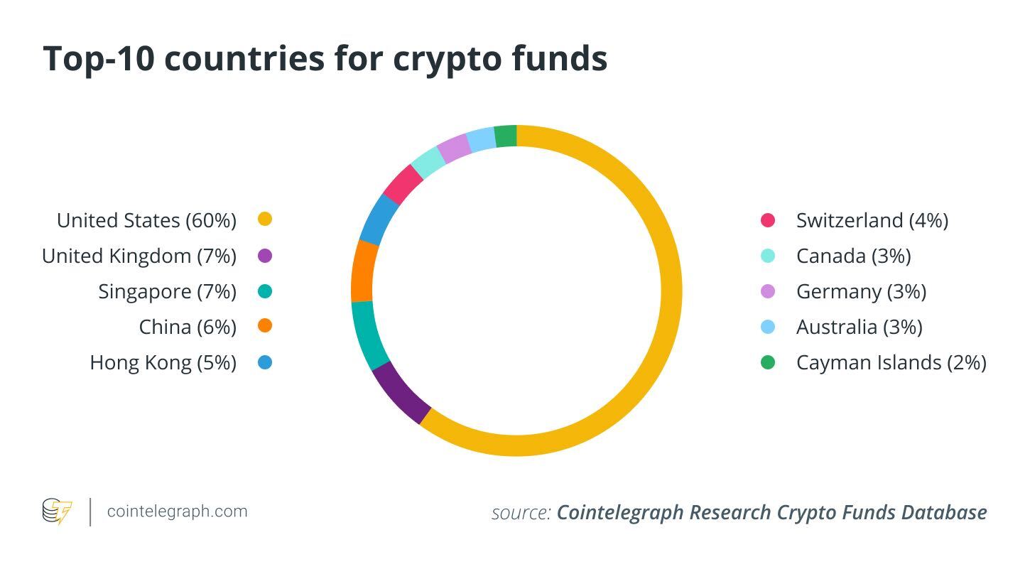- Inwestycje w fundusze kryptowalutowe wciąż zdominowane przez Stany Zjednoczone. Większość firm inwestujących w kryptowaluty to fundusze venture capital (52,8%), fundusze hedgingowe (44,3%) oraz private equity i fundusze wzajemne (2,9%)