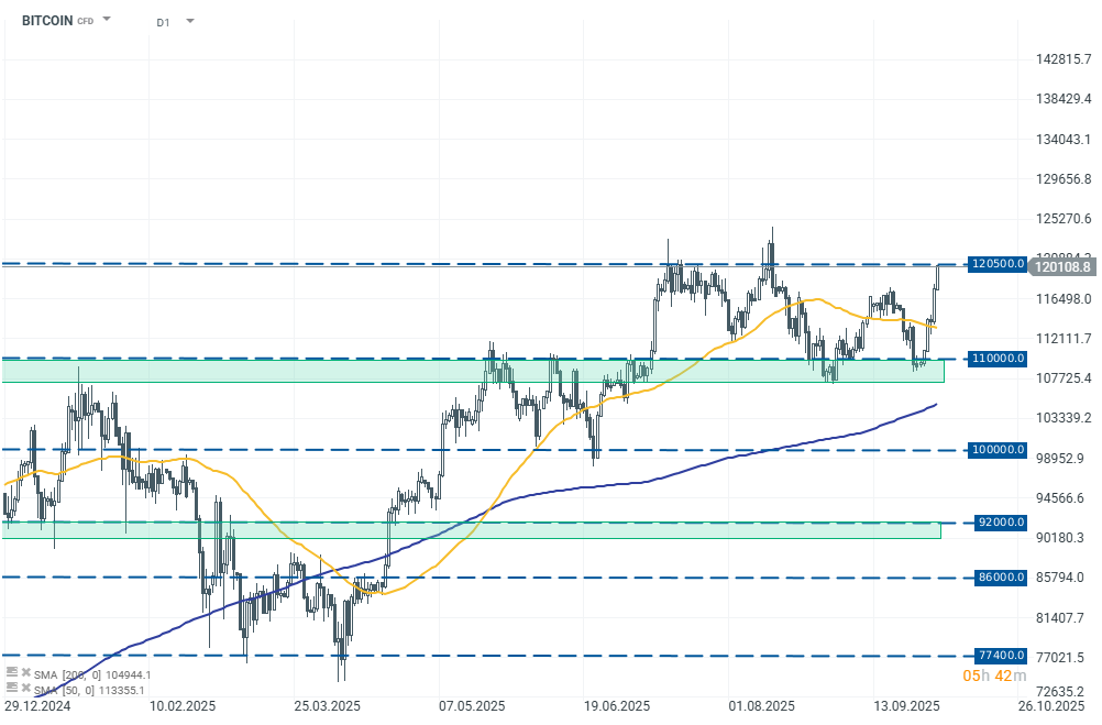 Bitcoin znajduje się obecnie przed ważnym poziomem oporu w okolicach 120,500 USD, który skutecznie utrzymał kurs w lipcu oraz sierpniu tego roku. Wobec tak dynamicznych wzrostów w ostatnich dniach niewykluczona jest również lekka realizacja zysków przez inwestorów.