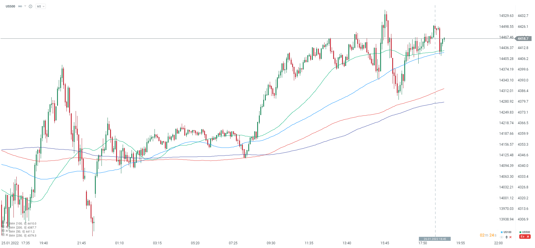 Brak większej reakcji na S&P 500. Czekamy na decyzję Fed o 20:00. Źródło: xStation5