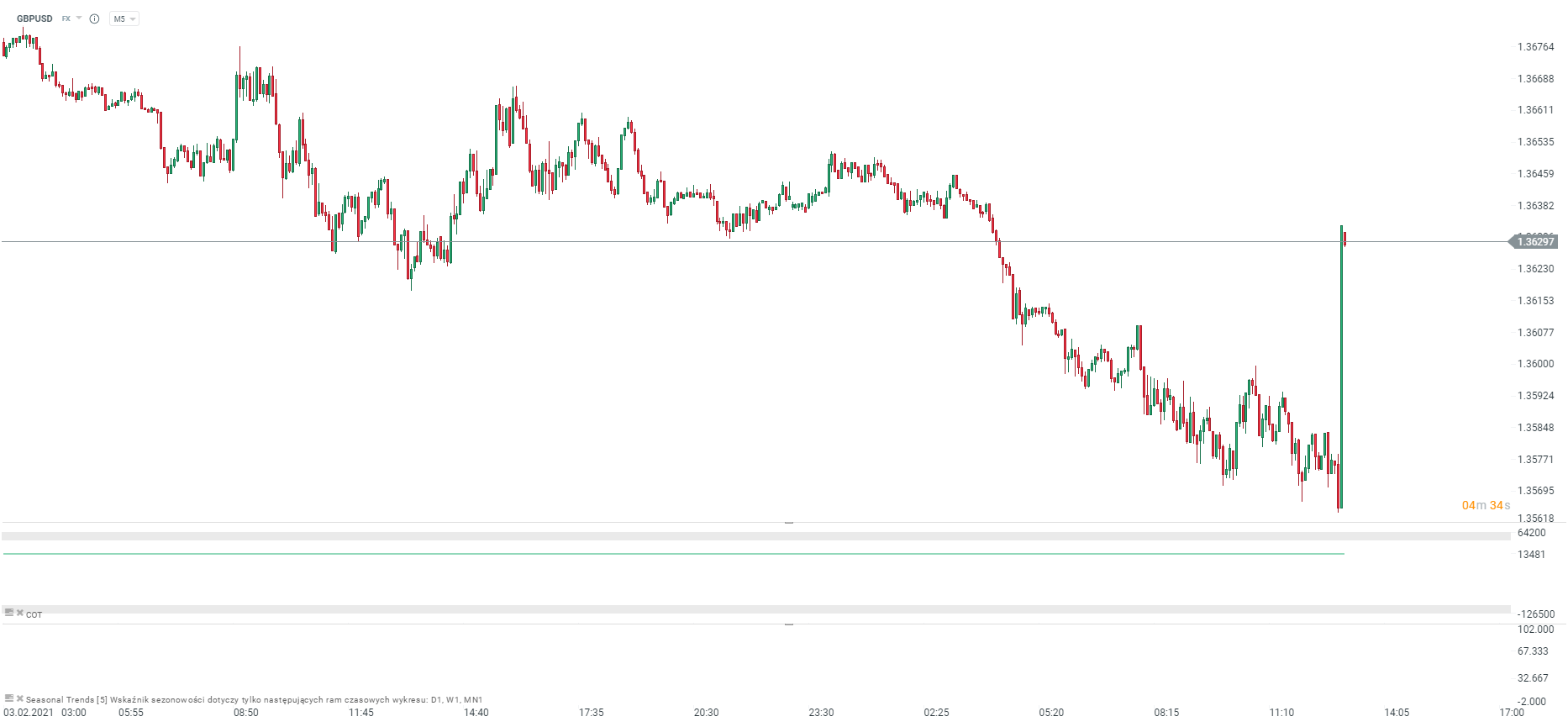 BoE zgodnie z oczekiwaniami utrzymuje politykę monetarną bez zmian. Główna stopa procentowa na poziomie 0,1%, cały program QE na poziomie 895 mld GBP, skup obligacji rządowych na poziomie 875 mld GBP, skup obligacji korporacyjnych 20 mld GBP. Zdaniem BoE obecny stan polityki jest właściwy, jest wiele niepewności dla gospodarki, natomiast rynki finansowe zachowują się bardzo odpornie na niepewności związane z przyszłością. BoE wskazuje na niewielki wzrost PKB w IV kwartale zeszłego roku, ale jednocześnie wskazuje na 4% spadku w Q1 2021 roku. BoE wskazuje, że polityka pozostanie bez zmian, dopóki nie będzie znacznego progresu dotyczącego inflacji oraz gospodarki.