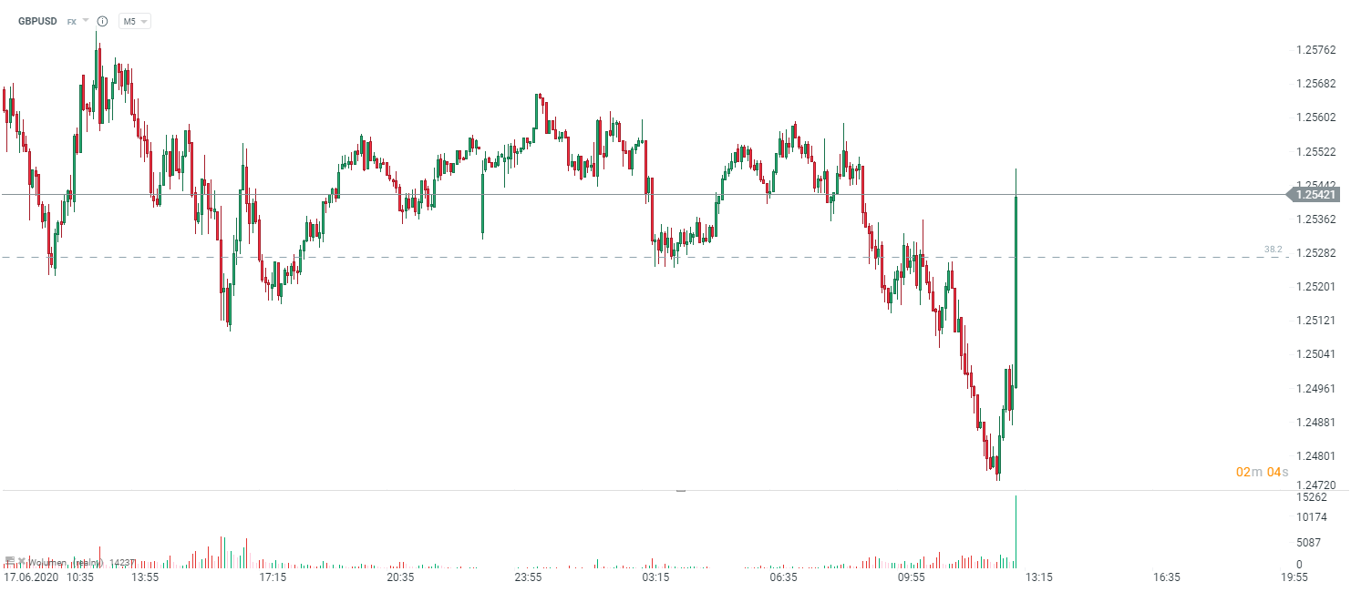 Funt zyskuje w stosunku do dolara, odrabiając większość dzisiejszych strat. Źródło: xStation5