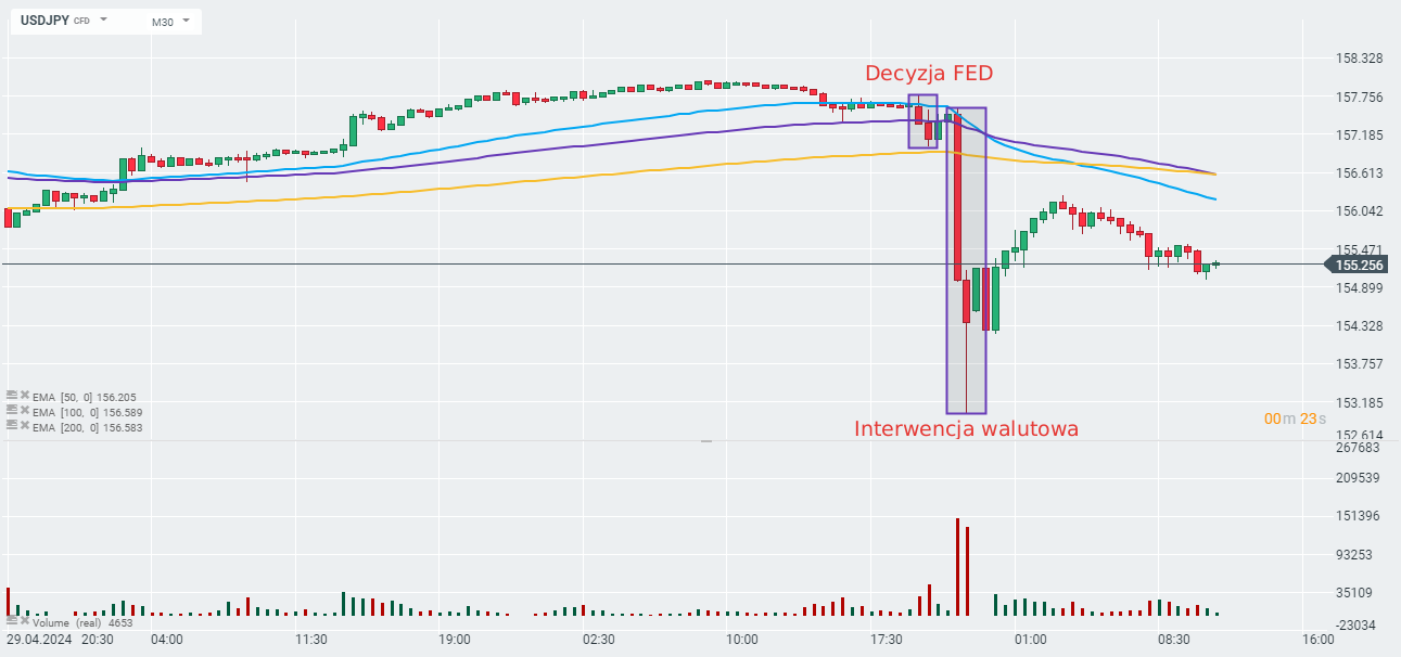 Jak wynika z raportu o bilansie BoJ, wczoraj dokonano interwencji walutowej na rynku jena. Sięgnęła ona 3,5 biliona jenów. Mając na uwadze sporą reakcję popytową na parach związanych z jenem wczoraj o godzinie 22:00, możemy stwierdzić, że z dużym prawdopodobieństwem była ona wywołana ruchem establishmentu japońskiego.