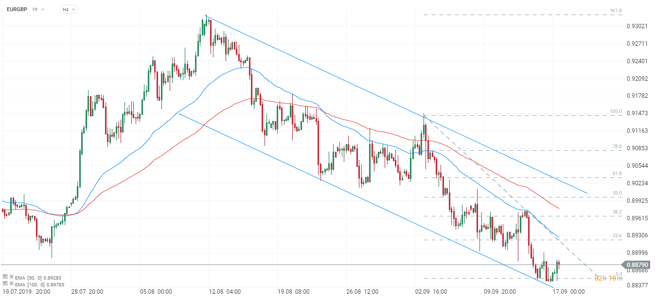 Patrząc na wykres, funt nie reaguje wyraźna deprecjacją w stosunku do euro. Trzeba jednak pamiętać, że sytuacja może ulec wyraźnej zmianie, jeśli sprawy dotyczące Brexitu nabiorą nieoczekiwanego tempa. Źródło: xStation5