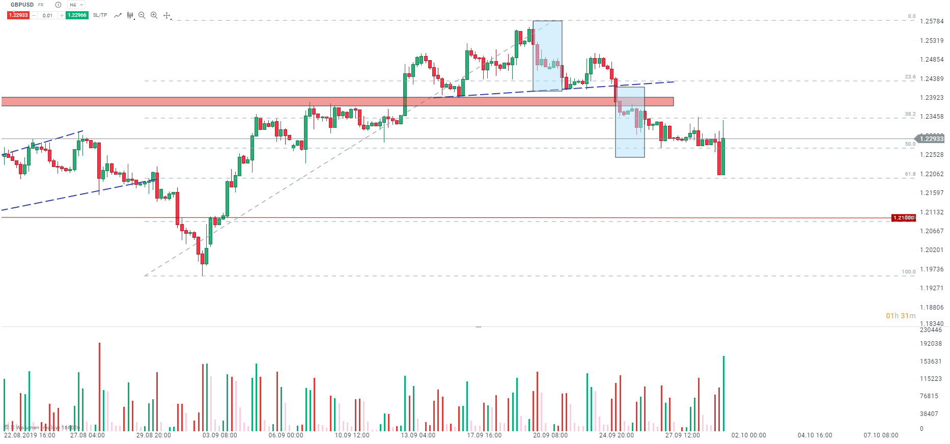Zgodnie z informacjami podanymi przez ludzi związanych ze sprawą, Unia Europejska ma rozważać czasowe ograniczenia dotyczące backstopy. Co więcej, ma być rozważane tylko rozwiązanie backstopy dotyczącego Irlandii Północnej. Jest to dosyć pozytywna informacja dla funta oraz daje szanse na wyjście Johnsona z całego zawirowania obronną ręką, jednocześnie unikając wyjścia bez porozumienia. Funt zyskuje na tej informacji, testując okolice poziomu 1,2300.