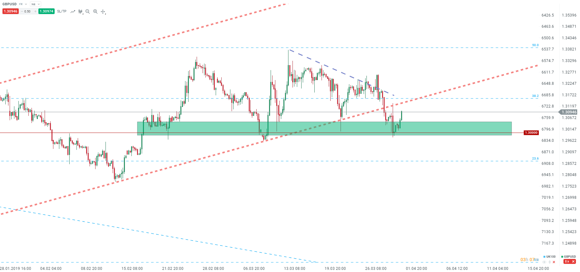 GBPUSD odbija z okolic poziomu 1,3000, pomimo braku jakichkolwiek nowych doniesień dotyczących Brexitu. Silny opór znajduje się w okolicach poziomu 1,3150. Źródło: xStation5