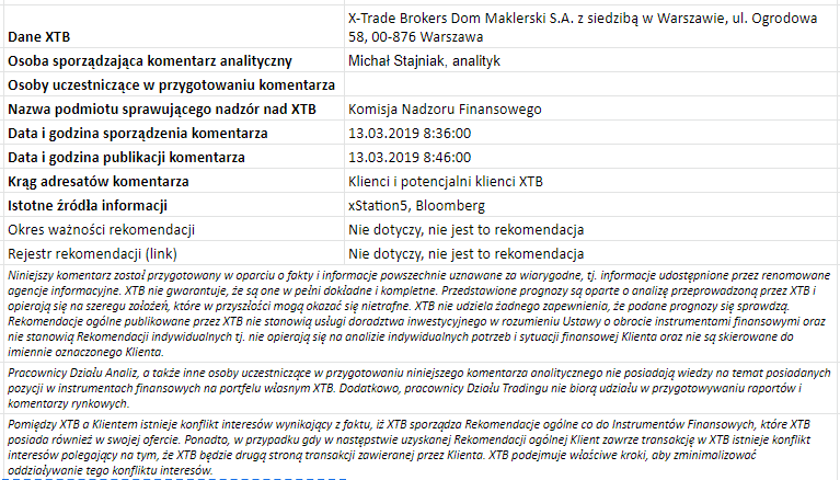 Ta publikacja handlowa jest informacyjna i edukacyjna. Nie jest rekomendacją inwestycyjną ani informacją rekomendującą lub sugerującą strategię inwestycyjną. W materiale nie sugerujemy żadnej strategii inwestycyjnej ani nie świadczymy usługi doradztwa inwestycyjnego. Materiał nie uwzględnia indywidualnej sytuacji finansowej, potrzeb i celów inwestycyjnych klienta. Nie jest też ofertą sprzedaży ani subskrypcji. Nie jest zaproszeniem do nabycia, reklamą ani promocją jakichkolwiek instrumentów finansowych. Publikację handlową przygotowaliśmy starannie i obiektywnie. Przedstawiamy stan faktyczny znany autorom w chwili tworzenia dokumentu. Nie umieszczamy w nim żadnych elementów oceniających. Informacje i badania oparte na historycznych danych lub wynikach oraz prognozy nie stanowią pewnego wskaźnika na przyszłość. Nie odpowiadamy za Twoje działania lub zaniechania, zwłaszcza za to, że zdecydujesz się nabyć lub zbyć instrumenty finansowe na podstawie informacji z tej publikacji handlowej. Nie odpowiadamy też za szkody, które mogą wynikać z bezpośredniego czy też pośredniego wykorzystania tych informacji. Inwestowanie jest ryzykowne. Inwestuj odpowiedzialnie.