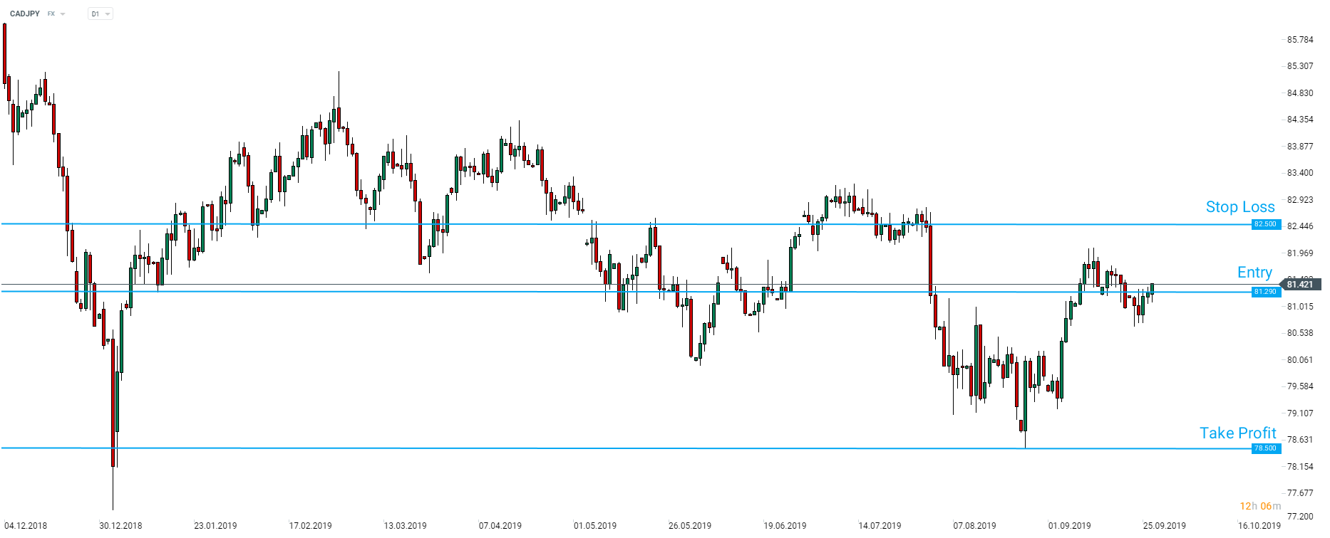 Morgan Stanley rekomenduje zajęcie pozycji krótkiej na CADJPY po cenie rynkowej z targetem na 78.50 i stop lossem przy 82.50. Źródło: xStation5