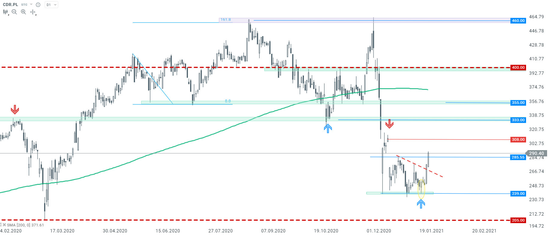 CD Projekt (CDR.PL) interwał D1. Źródło: xStation5