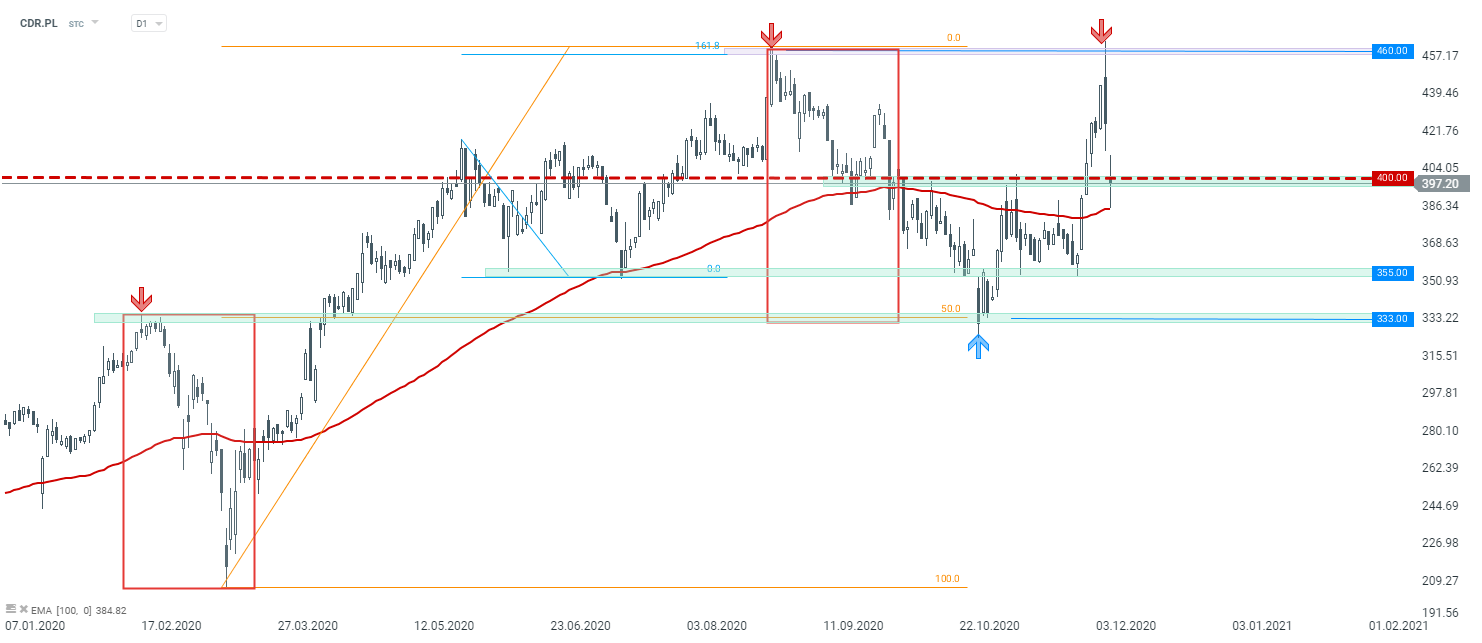 CD Projekt (CDR.PL) interwał D1. Źródło: xStation5