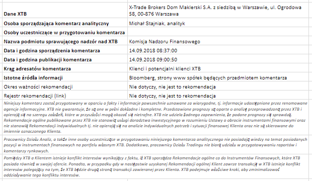 Ta publikacja handlowa jest informacyjna i edukacyjna. Nie jest rekomendacją inwestycyjną ani informacją rekomendującą lub sugerującą strategię inwestycyjną. W materiale nie sugerujemy żadnej strategii inwestycyjnej ani nie świadczymy usługi doradztwa inwestycyjnego. Materiał nie uwzględnia indywidualnej sytuacji finansowej, potrzeb i celów inwestycyjnych klienta. Nie jest też ofertą sprzedaży ani subskrypcji. Nie jest zaproszeniem do nabycia, reklamą ani promocją jakichkolwiek instrumentów finansowych. Publikację handlową przygotowaliśmy starannie i obiektywnie. Przedstawiamy stan faktyczny znany autorom w chwili tworzenia dokumentu. Nie umieszczamy w nim żadnych elementów oceniających. Informacje i badania oparte na historycznych danych lub wynikach oraz prognozy nie stanowią pewnego wskaźnika na przyszłość. Nie odpowiadamy za Twoje działania lub zaniechania, zwłaszcza za to, że zdecydujesz się nabyć lub zbyć instrumenty finansowe na podstawie informacji z tej publikacji handlowej. Nie odpowiadamy też za szkody, które mogą wynikać z bezpośredniego czy też pośredniego wykorzystania tych informacji. Inwestowanie jest ryzykowne. Inwestuj odpowiedzialnie.
