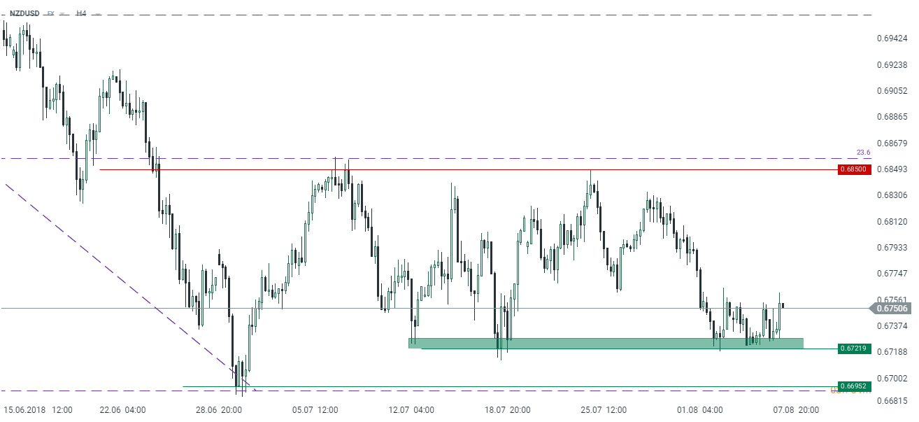 W koszyku walut G10 wyróżnia się dolar nowozelandzki i zyskuje prawie 0,3% w stosunku do dolara amerykańskiego. Lepszą dyspozycję można przypisać najnowszym danym dotyczącym oczekiwań inflacyjnych. Zgodnie z rocznymi i 2-letnimi prognozami inflacyjnymi RBNZ w tym kwartale wzrosły oczekiwania inflacyjne. Pierwszy wskaźnik wzrósł do 1,86% z 1,8%, podczas gdy drugi wzrósł do 2,04% z 2,01%. Ogólnie rzecz biorąc, dane nie przyniosły zbyt dużej presji krajowej, choć może to być ważny punkt do obejrzenia w dzisiejszym wieczornym komunikacie RBNZ . Z kolei dolar australijski jest jedną z najsłabszych walut po uwagach Lowe z RBA. Szef powtórzył, że nie ma silnego argumentu za krótkoterminowym ruchem stopy procentowej sugerując, że prawdopodobieństwo ruchu prawdopodobnie wzrośnie, jeśli gospodarka pokryje najbliższe oczekiwania. Dodał, że dużo zależy od bezrobocia i inflacji, która zbliża się do połowy przedziału docelowego. Lowe przyznał również, że eskalacja wojny handlowej może być szkodliwa dla światowej gospodarki.