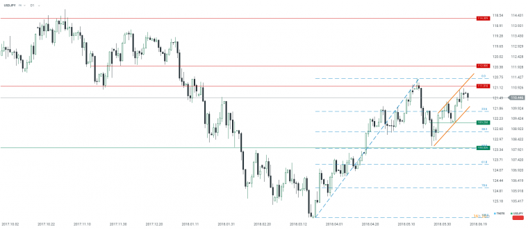Zgodnie z oczekiwaniami USA nałożyło nowe cła na chińskie dobra o wartości 50 miliardów dolarów. Dodatkowo administracja amerykańska zagroziła, że nałoży kolejne cła w przypadku reakcji odwetowej ze strony chińskiej. Pekin odpowiedział publikując listę amerykańskich towarów o wartości 34 miliardów dolarów, na które nałożone zostaną cła w wysokości 25% (głównie towary rolne i samochody). Wejdą one w życie z dniem 6 lipca. Ponadto, Chiny planują nałożyć opłaty na dodatkowe towary o wartości 16 miliardów dolarów, jednak lista tych towarów wciąż jest przygotowywana. Stany Zjednoczone jak na razie nie odpowiedziały na ruch Chin, jednak ich odpowiedź, która pewnie wkrótce nadejdzie, może być zapalnikiem Wojny Handlowej. W takiej sytuacji zagrożone zostaną rynki akcji, a inwestorzy będą bardziej optymistycznie patrzeć na aktywa “bezpiecznej przystani”. W prawdzie już obserwujemy taką sytuację na rynku walutowym, gdzie zyskuje frank szwajcarski i jen japoński. W trakcie sesji azjatyckiej obserwowaliśmy mocne spadki japońskiego Nikkei (JAP225). Giełdy w Chinach są dziś zamknięte ze względu na święto.