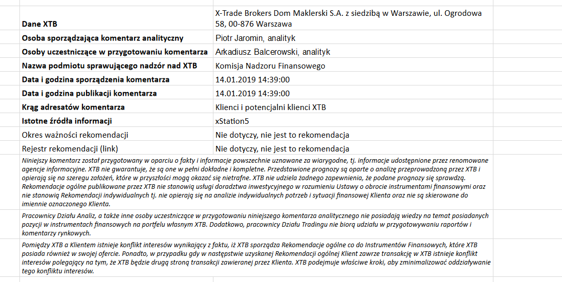Ta publikacja handlowa jest informacyjna i edukacyjna. Nie jest rekomendacją inwestycyjną ani informacją rekomendującą lub sugerującą strategię inwestycyjną. W materiale nie sugerujemy żadnej strategii inwestycyjnej ani nie świadczymy usługi doradztwa inwestycyjnego. Materiał nie uwzględnia indywidualnej sytuacji finansowej, potrzeb i celów inwestycyjnych klienta. Nie jest też ofertą sprzedaży ani subskrypcji. Nie jest zaproszeniem do nabycia, reklamą ani promocją jakichkolwiek instrumentów finansowych. Publikację handlową przygotowaliśmy starannie i obiektywnie. Przedstawiamy stan faktyczny znany autorom w chwili tworzenia dokumentu. Nie umieszczamy w nim żadnych elementów oceniających. Informacje i badania oparte na historycznych danych lub wynikach oraz prognozy nie stanowią pewnego wskaźnika na przyszłość. Nie odpowiadamy za Twoje działania lub zaniechania, zwłaszcza za to, że zdecydujesz się nabyć lub zbyć instrumenty finansowe na podstawie informacji z tej publikacji handlowej. Nie odpowiadamy też za szkody, które mogą wynikać z bezpośredniego czy też pośredniego wykorzystania tych informacji. Inwestowanie jest ryzykowne. Inwestuj odpowiedzialnie.