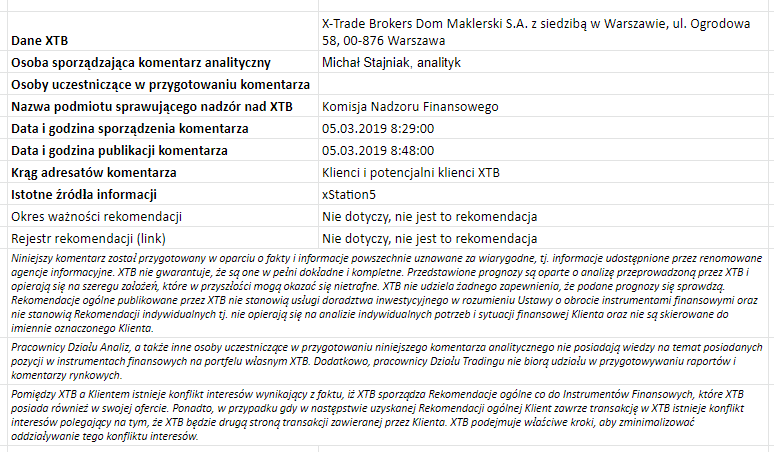 Ta publikacja handlowa jest informacyjna i edukacyjna. Nie jest rekomendacją inwestycyjną ani informacją rekomendującą lub sugerującą strategię inwestycyjną. W materiale nie sugerujemy żadnej strategii inwestycyjnej ani nie świadczymy usługi doradztwa inwestycyjnego. Materiał nie uwzględnia indywidualnej sytuacji finansowej, potrzeb i celów inwestycyjnych klienta. Nie jest też ofertą sprzedaży ani subskrypcji. Nie jest zaproszeniem do nabycia, reklamą ani promocją jakichkolwiek instrumentów finansowych. Publikację handlową przygotowaliśmy starannie i obiektywnie. Przedstawiamy stan faktyczny znany autorom w chwili tworzenia dokumentu. Nie umieszczamy w nim żadnych elementów oceniających. Informacje i badania oparte na historycznych danych lub wynikach oraz prognozy nie stanowią pewnego wskaźnika na przyszłość. Nie odpowiadamy za Twoje działania lub zaniechania, zwłaszcza za to, że zdecydujesz się nabyć lub zbyć instrumenty finansowe na podstawie informacji z tej publikacji handlowej. Nie odpowiadamy też za szkody, które mogą wynikać z bezpośredniego czy też pośredniego wykorzystania tych informacji. Inwestowanie jest ryzykowne. Inwestuj odpowiedzialnie.