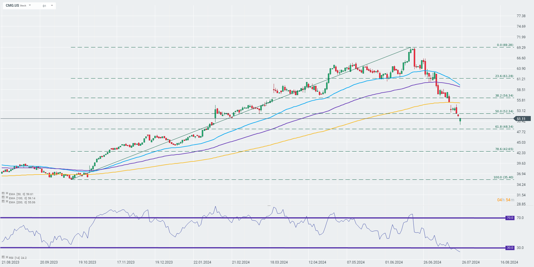 Akcje Chipotle Mexican Grill (CMG.US) tracą w chwili obecnej blisko 2,2%, negując tym samym blisko 4% spadki, które obserwowaliśmy na początku sesji, po tym jak sieć restauracji opublikowała wyniki za drugi kwartał. Chociaż porównywalna sprzedaż przekroczyła oczekiwania analityków, tak same komentarze dotyczące możliwego spadku marż w przyszłości zaniepokoił inwestorów. W dużej mierze wynikało to z planu wydawania większych porcji posiłków, po tym jak wewnętrzne ustalenia wykazały, że w blisko 15% restauracji spółki klienci skarżyli się publicznie z powodu ograniczanych porcji.