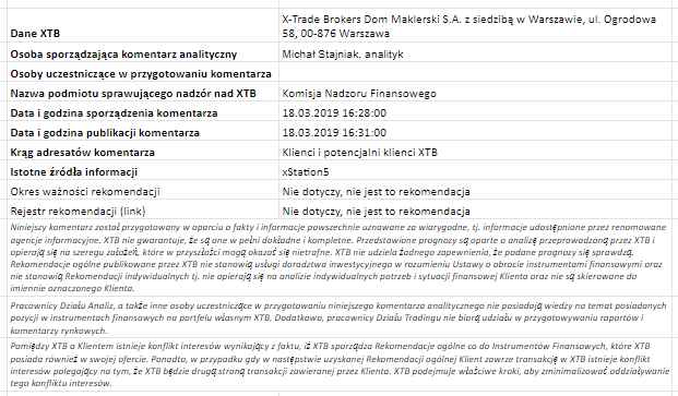 Ta publikacja handlowa jest informacyjna i edukacyjna. Nie jest rekomendacją inwestycyjną ani informacją rekomendującą lub sugerującą strategię inwestycyjną. W materiale nie sugerujemy żadnej strategii inwestycyjnej ani nie świadczymy usługi doradztwa inwestycyjnego. Materiał nie uwzględnia indywidualnej sytuacji finansowej, potrzeb i celów inwestycyjnych klienta. Nie jest też ofertą sprzedaży ani subskrypcji. Nie jest zaproszeniem do nabycia, reklamą ani promocją jakichkolwiek instrumentów finansowych. Publikację handlową przygotowaliśmy starannie i obiektywnie. Przedstawiamy stan faktyczny znany autorom w chwili tworzenia dokumentu. Nie umieszczamy w nim żadnych elementów oceniających. Informacje i badania oparte na historycznych danych lub wynikach oraz prognozy nie stanowią pewnego wskaźnika na przyszłość. Nie odpowiadamy za Twoje działania lub zaniechania, zwłaszcza za to, że zdecydujesz się nabyć lub zbyć instrumenty finansowe na podstawie informacji z tej publikacji handlowej. Nie odpowiadamy też za szkody, które mogą wynikać z bezpośredniego czy też pośredniego wykorzystania tych informacji. Inwestowanie jest ryzykowne. Inwestuj odpowiedzialnie.
