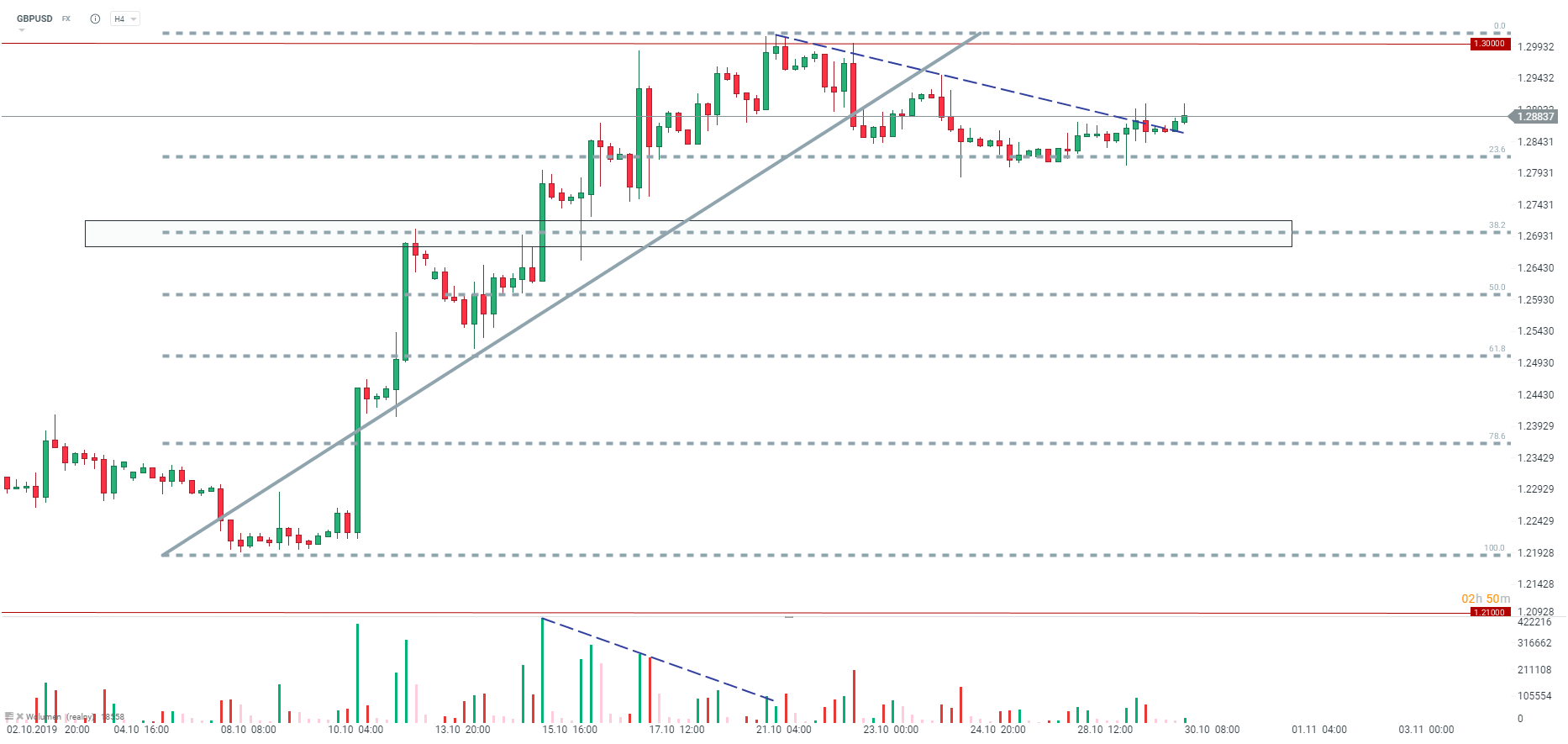 Brytyjski funt reaguje pozytywnie na ostatnie wieści dotyczące przyśpieszonych wyborów. Sam ruch jednak na funcie jest naprawdę mocno ograniczony. Widać również ograniczony wolumen na rynku. Warto zwrócić uwagę, że inicjatywę możę aktualnie przejąć dolar, głównie ze względu na zbliżającą się decyzję Rezerwy Federalnej. Źródło: xStation5