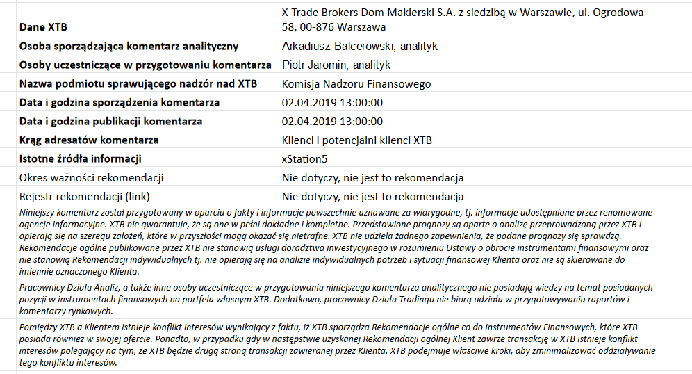 Ta publikacja handlowa jest informacyjna i edukacyjna. Nie jest rekomendacją inwestycyjną ani informacją rekomendującą lub sugerującą strategię inwestycyjną. W materiale nie sugerujemy żadnej strategii inwestycyjnej ani nie świadczymy usługi doradztwa inwestycyjnego. Materiał nie uwzględnia indywidualnej sytuacji finansowej, potrzeb i celów inwestycyjnych klienta. Nie jest też ofertą sprzedaży ani subskrypcji. Nie jest zaproszeniem do nabycia, reklamą ani promocją jakichkolwiek instrumentów finansowych. Publikację handlową przygotowaliśmy starannie i obiektywnie. Przedstawiamy stan faktyczny znany autorom w chwili tworzenia dokumentu. Nie umieszczamy w nim żadnych elementów oceniających. Informacje i badania oparte na historycznych danych lub wynikach oraz prognozy nie stanowią pewnego wskaźnika na przyszłość. Nie odpowiadamy za Twoje działania lub zaniechania, zwłaszcza za to, że zdecydujesz się nabyć lub zbyć instrumenty finansowe na podstawie informacji z tej publikacji handlowej. Nie odpowiadamy też za szkody, które mogą wynikać z bezpośredniego czy też pośredniego wykorzystania tych informacji. Inwestowanie jest ryzykowne. Inwestuj odpowiedzialnie.