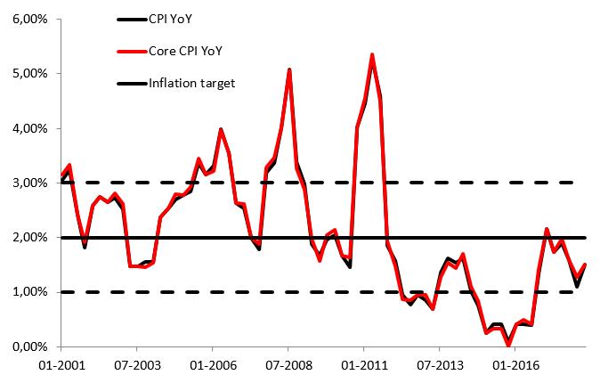 Konsensus rynkowy sugeruje, że dzisiejszy odczyt pokaże wartość na poziomie 1,7% r/r, podczas gdy ostatnim razem wyniósł 1,5% r/r. W ujęciu kwartalnym inflacja konsumencka prawdopodobnie wyniosła 0.7% r/r w trzecim kwartale, co byłoby wzrostem w porównaniu do 0,4% r/r za drugi kwartał bieżącego roku. Dane dotyczące inflacji CPI z Nowej Zelandii poznamy dzisiaj w nocy o 23:45.