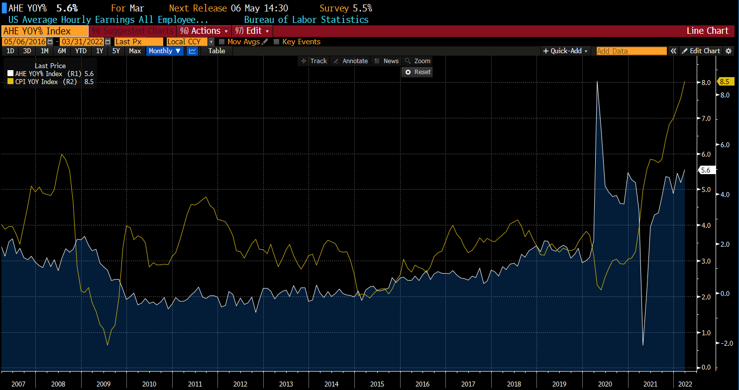 Główna uwaga będzie należała się jednak płacom. W tym kontekście warto zwrócić uwagę na ostatnie dane dotyczące produktywności i kosztów pracy. Dane pokazały największy spadek produktywności od 1947 roku! Co więcej, zbiegło się to jednocześnie z potężnym wzrostem kwartalnych kosztów pracy, najwyższym od 1982 roku, co jedynie pokazuje, że Fed ma pełny mandat do mocnych podwyżek stóp procentowych, zważając na naprawdę mocny i zdrowy rynek pracy. Jakikolwiek sygnał spowolnienia inflacji mógłby dać ulgę rynkom po ostatniej wyprzedaży na rynku giełdowym oraz nawet na rynku obligacji, gdzie rentowności 10 letnich obligacji sięgnęły ponad 3,1%.