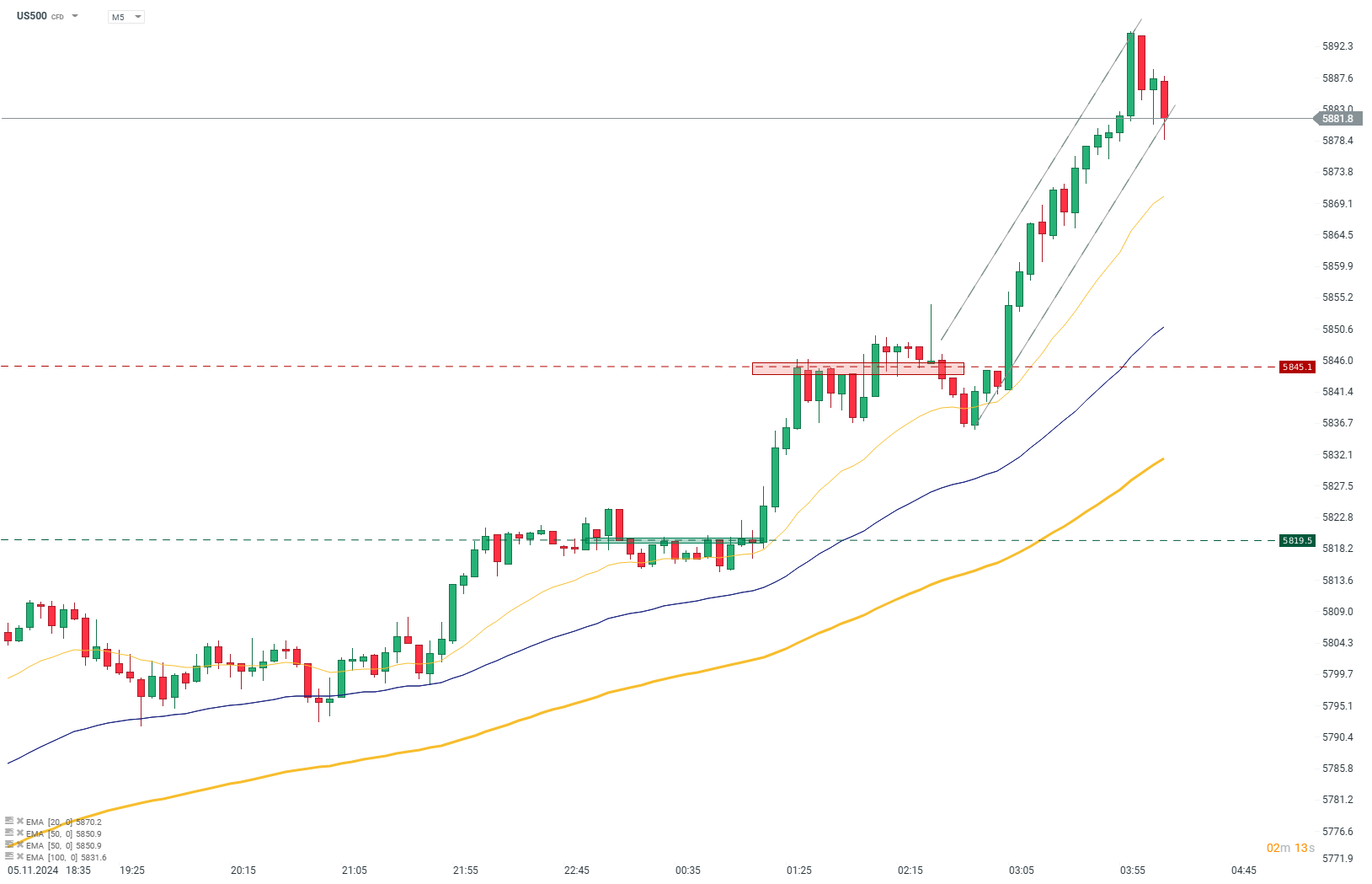 Notowania kontraktu na indeks S&P 500 kontynuują rajd podparty przewidywaniami odnośnie zwycięstwa Trumpa. Źródło: xStation