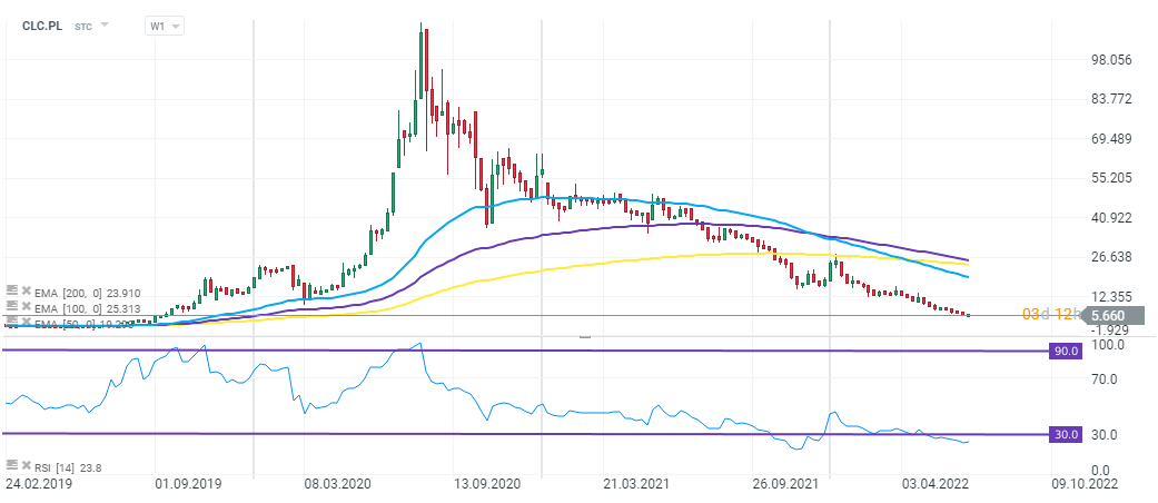 Wykres akcji Columbus Energy (CLC.PL), interwał W1. Źródło: xStation 5