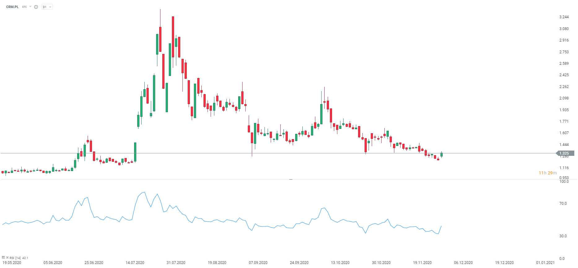 Cormay (CRM.PL) jest producentem odczynników diagnostycznych, a teraz również szybkich testów na koronawirusa. Spółka ta ma za sobą gigantyczny rajd w lipcu, w trakcie hossy spółek covidowych, ale teraz znajduje się bardzo blisko poziomów notowanych na samym początku.