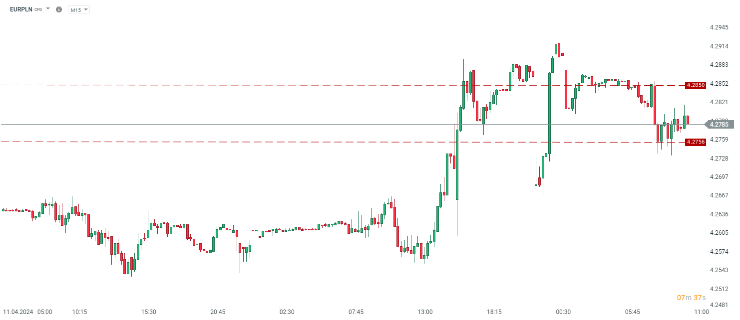 Notowania kontraktu na waluty EURPLN. Źródło: xStation