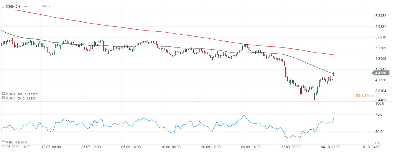 Credit Suisse (CSGN.CH) poinformował o skupie długu za gotówkę o wartości około 3 miliardów franków szwajcarskich. Decyzja banku ma wymiar strategiczny ale również w pewnym sensie marketingowy. Prawdopodobnie, zarząd w ten sposób chce pokazać siłę finansową i jednocześnie poprawić nadszarpnięty wizerunek. Akcje rosną o blisko 5% i kosztują już 4,4 CHF odbijając blisko 30% od poniedziałkowych minimów: