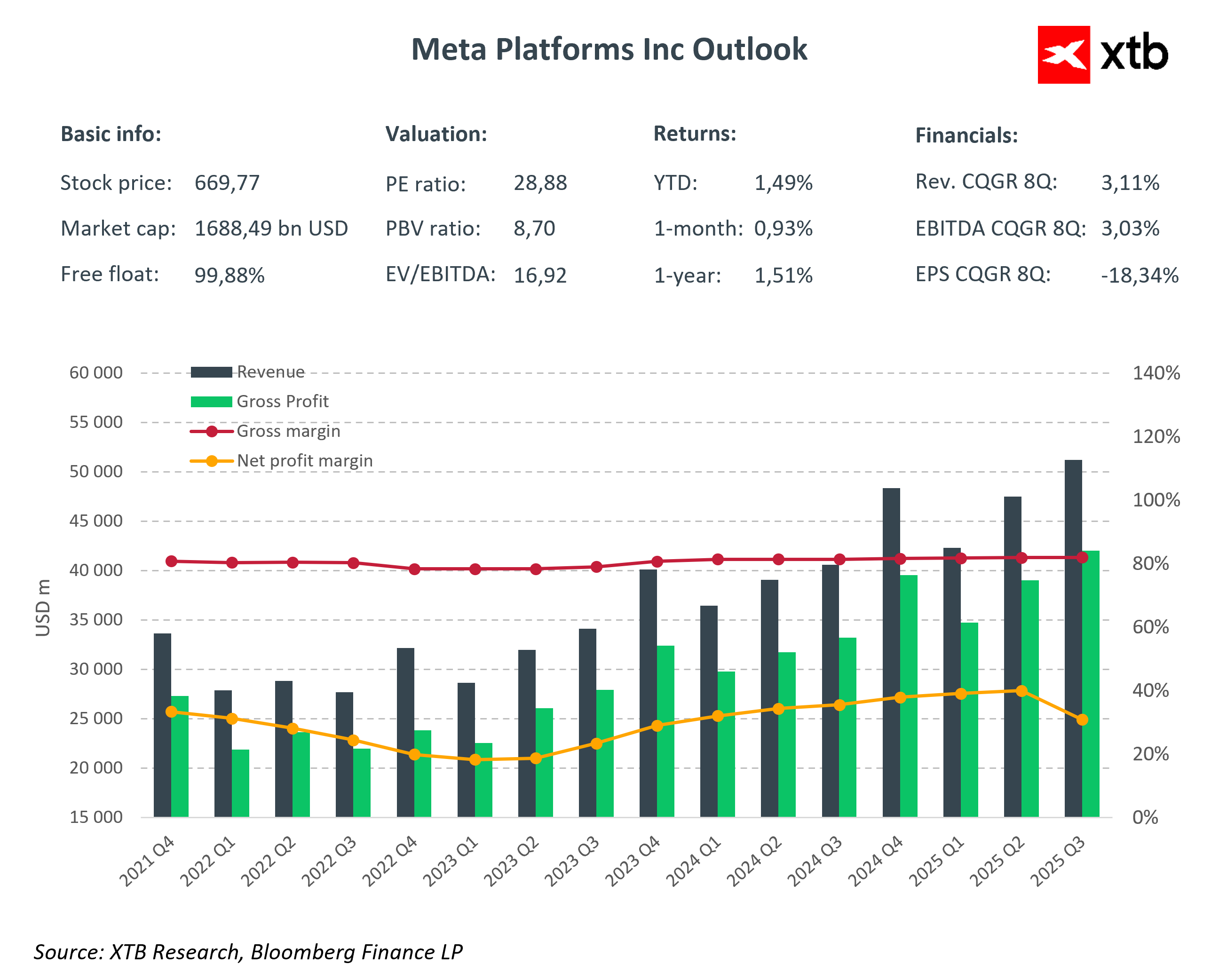 Meta znajduje się obecnie w fazie, w której łączy dynamiczny wzrost przychodów, wyjątkowo wysoką rentowność oraz agresywne inwestycje w sztuczną inteligencję. Kluczowym pytaniem pozostaje nie to, czy spółka potrafi rosnąć, lecz czy potrafi utrzymać równowagę pomiędzy skalą inwestycji a zdolnością do dalszej monetyzacji swojej bazy użytkowników i technologii AI.