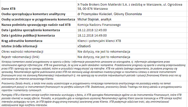 Ta publikacja handlowa jest informacyjna i edukacyjna. Nie jest rekomendacją inwestycyjną ani informacją rekomendującą lub sugerującą strategię inwestycyjną. W materiale nie sugerujemy żadnej strategii inwestycyjnej ani nie świadczymy usługi doradztwa inwestycyjnego. Materiał nie uwzględnia indywidualnej sytuacji finansowej, potrzeb i celów inwestycyjnych klienta. Nie jest też ofertą sprzedaży ani subskrypcji. Nie jest zaproszeniem do nabycia, reklamą ani promocją jakichkolwiek instrumentów finansowych. Publikację handlową przygotowaliśmy starannie i obiektywnie. Przedstawiamy stan faktyczny znany autorom w chwili tworzenia dokumentu. Nie umieszczamy w nim żadnych elementów oceniających. Informacje i badania oparte na historycznych danych lub wynikach oraz prognozy nie stanowią pewnego wskaźnika na przyszłość. Nie odpowiadamy za Twoje działania lub zaniechania, zwłaszcza za to, że zdecydujesz się nabyć lub zbyć instrumenty finansowe na podstawie informacji z tej publikacji handlowej. Nie odpowiadamy też za szkody, które mogą wynikać z bezpośredniego czy też pośredniego wykorzystania tych informacji. Inwestowanie jest ryzykowne. Inwestuj odpowiedzialnie.