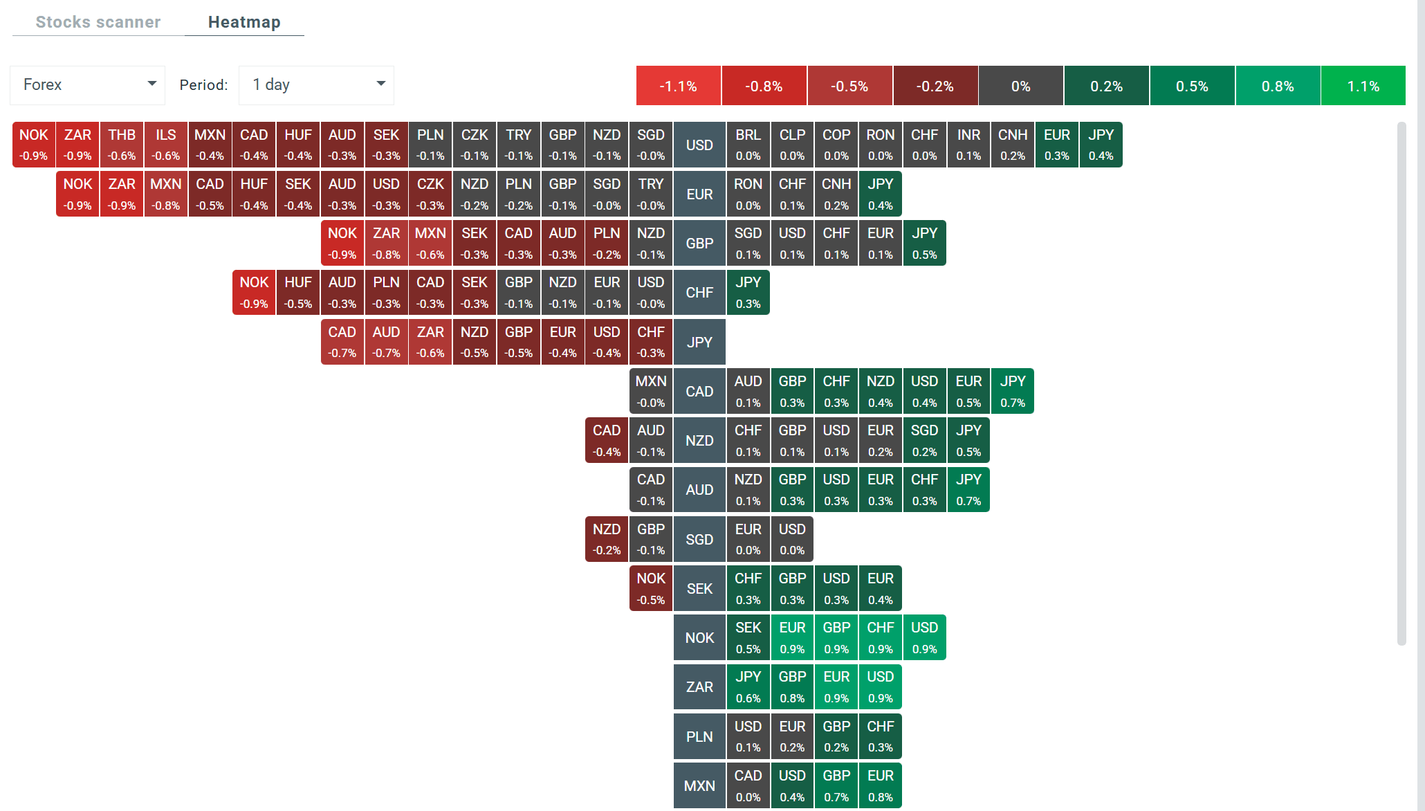 - Na szerokim rynku FX najlepiej radzi sobie obecnie jen japoński oraz dolar amerykański. Duże spadki widoczne są na dolarze australijskim oraz dolarze kanadyjskim (wpływ spadków metali szlachetnych).
