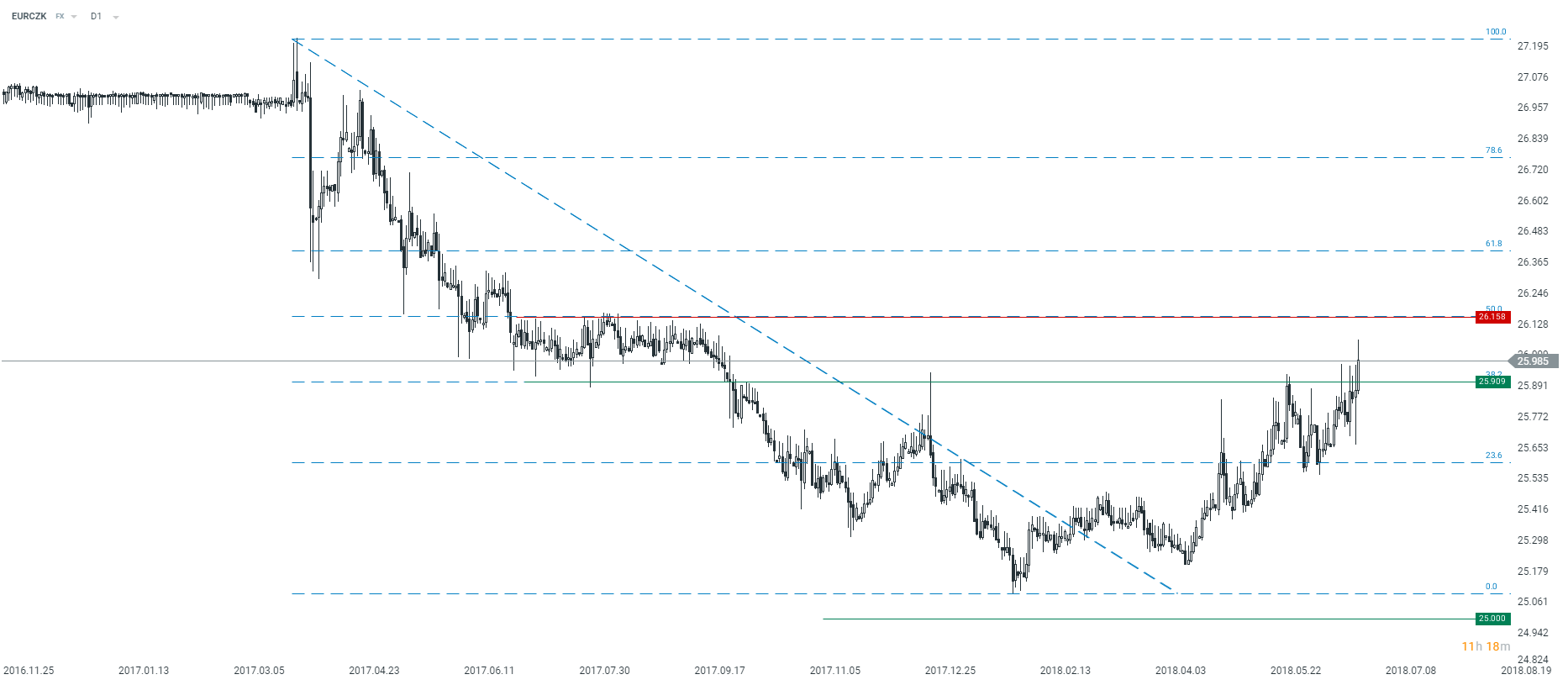 EURCZK próbuje przełamać się przez kluczowy opór
