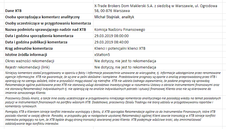 Ta publikacja handlowa jest informacyjna i edukacyjna. Nie jest rekomendacją inwestycyjną ani informacją rekomendującą lub sugerującą strategię inwestycyjną. W materiale nie sugerujemy żadnej strategii inwestycyjnej ani nie świadczymy usługi doradztwa inwestycyjnego. Materiał nie uwzględnia indywidualnej sytuacji finansowej, potrzeb i celów inwestycyjnych klienta. Nie jest też ofertą sprzedaży ani subskrypcji. Nie jest zaproszeniem do nabycia, reklamą ani promocją jakichkolwiek instrumentów finansowych. Publikację handlową przygotowaliśmy starannie i obiektywnie. Przedstawiamy stan faktyczny znany autorom w chwili tworzenia dokumentu. Nie umieszczamy w nim żadnych elementów oceniających. Informacje i badania oparte na historycznych danych lub wynikach oraz prognozy nie stanowią pewnego wskaźnika na przyszłość. Nie odpowiadamy za Twoje działania lub zaniechania, zwłaszcza za to, że zdecydujesz się nabyć lub zbyć instrumenty finansowe na podstawie informacji z tej publikacji handlowej. Nie odpowiadamy też za szkody, które mogą wynikać z bezpośredniego czy też pośredniego wykorzystania tych informacji. Inwestowanie jest ryzykowne. Inwestuj odpowiedzialnie.