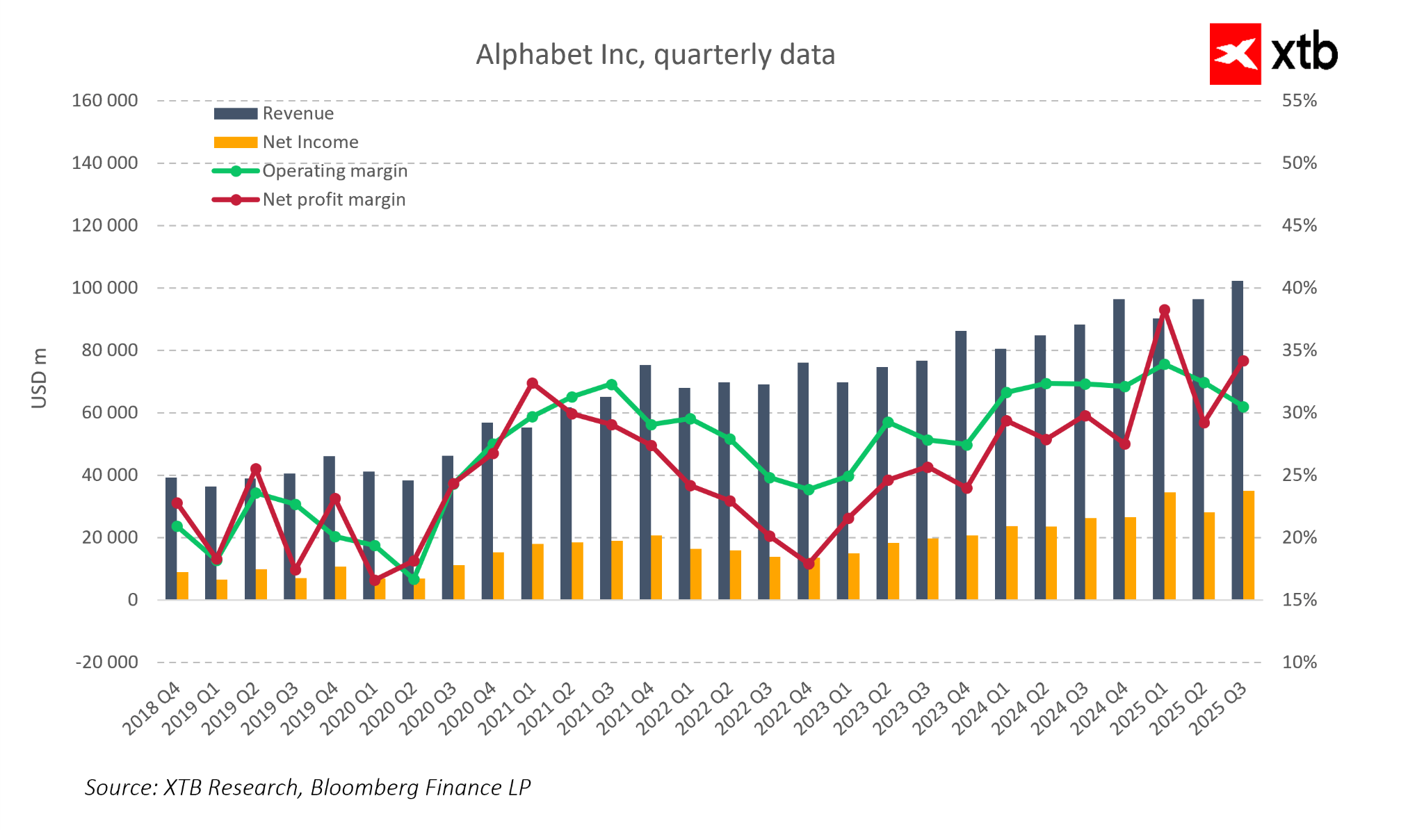 Wprowadzenie najnowszego modelu sztucznej inteligencji Gemini 3 przez Google spotkało się z bardzo pozytywnym odbiorem rynku, czego wyrazem był wzrost kursu akcji Alphabet w dniu premiery. Model wyróżnia się zdolnością do udzielania bardziej złożonych i precyzyjnych odpowiedzi przy mniejszej liczbie zapytań, co podnosi efektywność interakcji użytkowników z systemem. Gemini 3 jest skalowalny na dużą skalę i integruje się bezpośrednio z usługami Google, w tym z wyszukiwarką, co pozwala potencjalnie dotrzeć do setek milionów użytkowników miesięcznie. Tak szeroka dystrybucja daje Alphabetowi realną przewagę w zakresie zbierania danych i optymalizacji modeli AI, a szybkie wdrażanie nowych funkcji w całym ekosystemie firmy zwiększa jej konkurencyjność w sektorze sztucznej inteligencji.