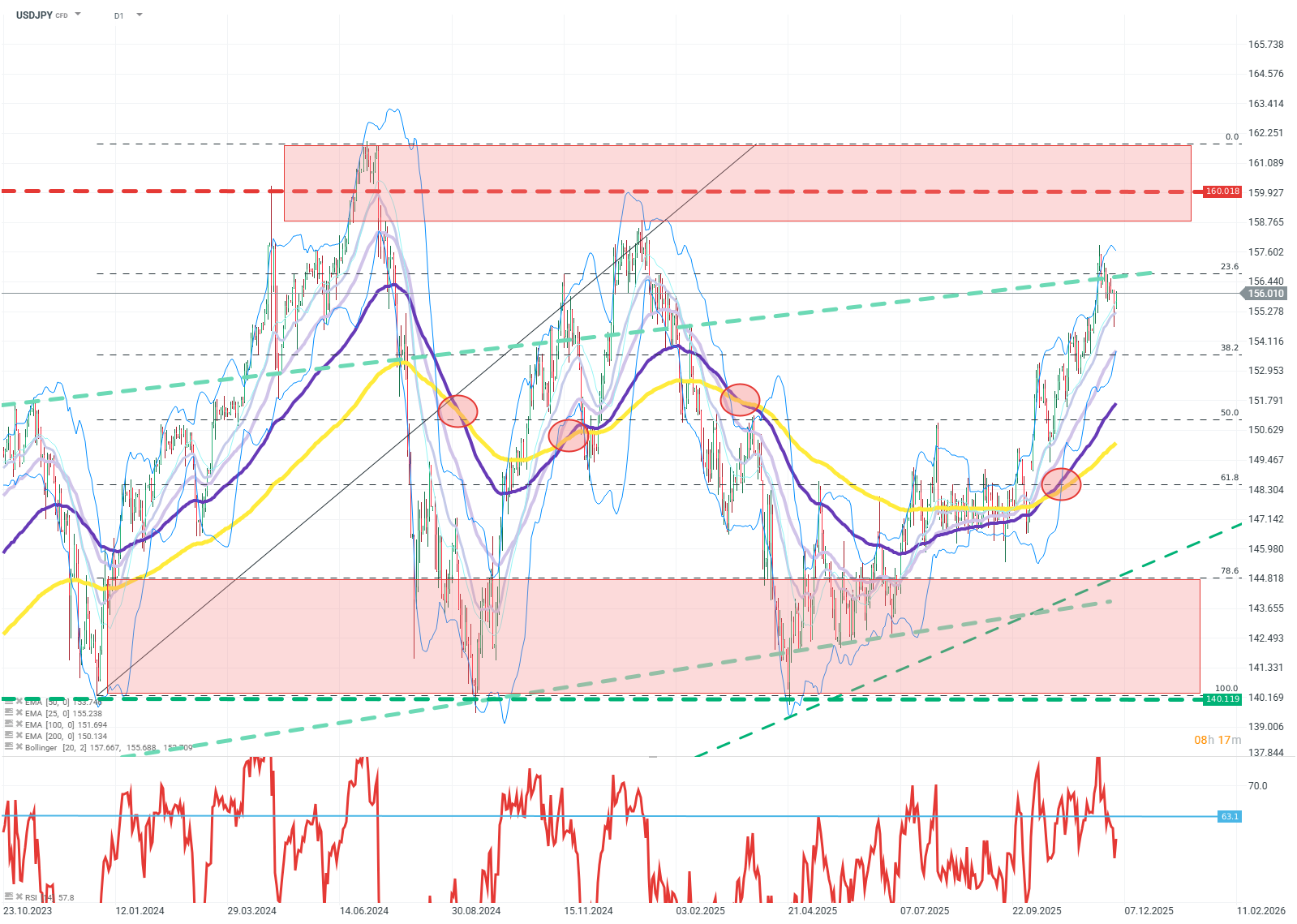 Dlaczego Jen załamał trend wzrostowy na 160 i utrzymuje się od roku w konsolidacji? Bank Japonii jest championem wagi superciężkiej na polu interwencji walutowych, nawet słowna interwencja banku jest w stanie sprowadzić kurs o kilka jenów w ciągu kilku minut. Bank Japonii ma największe rezerwy walutowe na świecie i nie zawaha się ich użyć, próba ataku spekulacyjnego na Jena jest z góry skazana na klęskę. Jednak BoJ nie może utrzymywać kursu jena tak wysoko przy tak niskich stopach, prędzej czy później bank będzie zmuszony je podnieść.