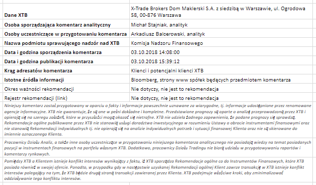 Ta publikacja handlowa jest informacyjna i edukacyjna. Nie jest rekomendacją inwestycyjną ani informacją rekomendującą lub sugerującą strategię inwestycyjną. W materiale nie sugerujemy żadnej strategii inwestycyjnej ani nie świadczymy usługi doradztwa inwestycyjnego. Materiał nie uwzględnia indywidualnej sytuacji finansowej, potrzeb i celów inwestycyjnych klienta. Nie jest też ofertą sprzedaży ani subskrypcji. Nie jest zaproszeniem do nabycia, reklamą ani promocją jakichkolwiek instrumentów finansowych. Publikację handlową przygotowaliśmy starannie i obiektywnie. Przedstawiamy stan faktyczny znany autorom w chwili tworzenia dokumentu. Nie umieszczamy w nim żadnych elementów oceniających. Informacje i badania oparte na historycznych danych lub wynikach oraz prognozy nie stanowią pewnego wskaźnika na przyszłość. Nie odpowiadamy za Twoje działania lub zaniechania, zwłaszcza za to, że zdecydujesz się nabyć lub zbyć instrumenty finansowe na podstawie informacji z tej publikacji handlowej. Nie odpowiadamy też za szkody, które mogą wynikać z bezpośredniego czy też pośredniego wykorzystania tych informacji. Inwestowanie jest ryzykowne. Inwestuj odpowiedzialnie.