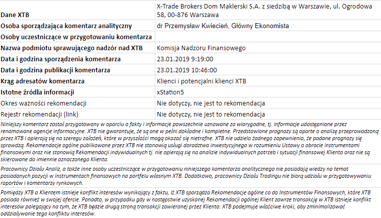 Ta publikacja handlowa jest informacyjna i edukacyjna. Nie jest rekomendacją inwestycyjną ani informacją rekomendującą lub sugerującą strategię inwestycyjną. W materiale nie sugerujemy żadnej strategii inwestycyjnej ani nie świadczymy usługi doradztwa inwestycyjnego. Materiał nie uwzględnia indywidualnej sytuacji finansowej, potrzeb i celów inwestycyjnych klienta. Nie jest też ofertą sprzedaży ani subskrypcji. Nie jest zaproszeniem do nabycia, reklamą ani promocją jakichkolwiek instrumentów finansowych. Publikację handlową przygotowaliśmy starannie i obiektywnie. Przedstawiamy stan faktyczny znany autorom w chwili tworzenia dokumentu. Nie umieszczamy w nim żadnych elementów oceniających. Informacje i badania oparte na historycznych danych lub wynikach oraz prognozy nie stanowią pewnego wskaźnika na przyszłość. Nie odpowiadamy za Twoje działania lub zaniechania, zwłaszcza za to, że zdecydujesz się nabyć lub zbyć instrumenty finansowe na podstawie informacji z tej publikacji handlowej. Nie odpowiadamy też za szkody, które mogą wynikać z bezpośredniego czy też pośredniego wykorzystania tych informacji. Inwestowanie jest ryzykowne. Inwestuj odpowiedzialnie.