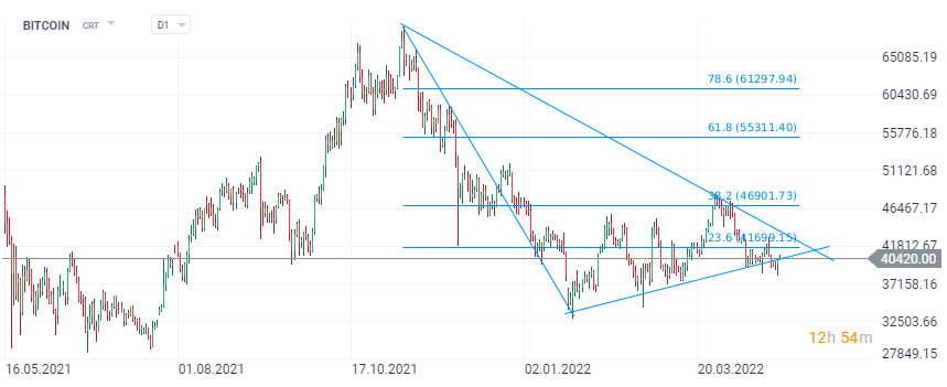 Część inwestorów uważała, że kryptowaluty mogą stanowić alternatywę i miejsce do 'ucieczki' przed działaniami banków centralnych osłąbiających waluty fiducjarne przez zachodzącą deprecjację wynikającą z luźnej polityki monetarnej. Ostatnie reakcje cenowe pokazują jednak że branża kryptowalut nerwowo reaguje na pogorszenie rynkowych sentymentów. Jednocześnie jednak Bitcoin notowany jest wciąż powyżej wycen z dnia inwazji Rosji na Ukrainę, cena od tego czasu zachowywała się 'spokojniej' od wielu amerykańskich technologicznych spółek;