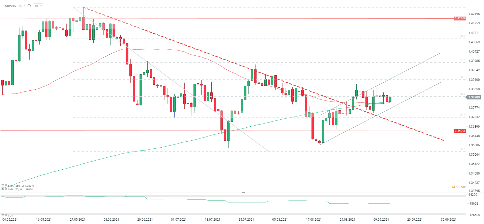 To zwiększa szanse na ruch w Wielkiej Brytanii pod względem normalizacji polityki monetarnej, w szczególności, że Wielka Brytania jest jednym z liderów pod względem ilości przeprowadzanych szczepień na świecie, co pozwala na względnie normalne funkcjonowanie gospodarki (jednocześnie wciąż wiele ludzi jest niezaszczepionych i Wielka Brytania ze względu na liczbę ludności wciąż figuruje bardzo wysoko w statystykach dotyczących ilości przypadków koronawirusa - ryzyko kolejnych restrykcji jest jednak relatywnie małe). W przyszłym tygodniu odbędzie się posiedzenie BoE i raczej nie powinniśmy jeszcze liczyć na zmiany, ale nie wykluczone, że pojawi się niemal równy podział pod względem tego, kto chce utrzymać politykę bez zmian, a kto chce jej normalizacji.