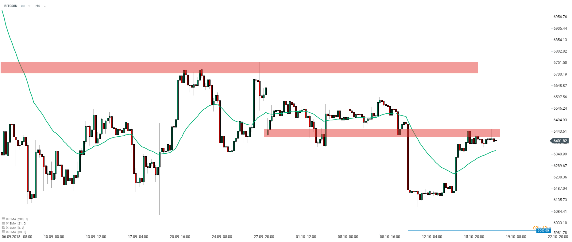 Po odrobieniu strat z zeszłego tygodnia i mocnych wzrostach na początku tego tygodnia BITCOIN porusza się w okolicach poziomu 6400 USD. Cena napotkała opór w okolicach 6430-6450 USD i może potrzebować mocniejszego impulsu w celu przebicia się wyżej. Źródło: xStation5