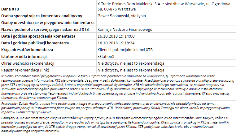 Ta publikacja handlowa jest informacyjna i edukacyjna. Nie jest rekomendacją inwestycyjną ani informacją rekomendującą lub sugerującą strategię inwestycyjną. W materiale nie sugerujemy żadnej strategii inwestycyjnej ani nie świadczymy usługi doradztwa inwestycyjnego. Materiał nie uwzględnia indywidualnej sytuacji finansowej, potrzeb i celów inwestycyjnych klienta. Nie jest też ofertą sprzedaży ani subskrypcji. Nie jest zaproszeniem do nabycia, reklamą ani promocją jakichkolwiek instrumentów finansowych. Publikację handlową przygotowaliśmy starannie i obiektywnie. Przedstawiamy stan faktyczny znany autorom w chwili tworzenia dokumentu. Nie umieszczamy w nim żadnych elementów oceniających. Informacje i badania oparte na historycznych danych lub wynikach oraz prognozy nie stanowią pewnego wskaźnika na przyszłość. Nie odpowiadamy za Twoje działania lub zaniechania, zwłaszcza za to, że zdecydujesz się nabyć lub zbyć instrumenty finansowe na podstawie informacji z tej publikacji handlowej. Nie odpowiadamy też za szkody, które mogą wynikać z bezpośredniego czy też pośredniego wykorzystania tych informacji. Inwestowanie jest ryzykowne. Inwestuj odpowiedzialnie.