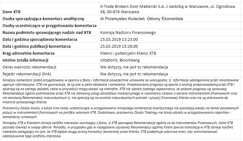 Ta publikacja handlowa jest informacyjna i edukacyjna. Nie jest rekomendacją inwestycyjną ani informacją rekomendującą lub sugerującą strategię inwestycyjną. W materiale nie sugerujemy żadnej strategii inwestycyjnej ani nie świadczymy usługi doradztwa inwestycyjnego. Materiał nie uwzględnia indywidualnej sytuacji finansowej, potrzeb i celów inwestycyjnych klienta. Nie jest też ofertą sprzedaży ani subskrypcji. Nie jest zaproszeniem do nabycia, reklamą ani promocją jakichkolwiek instrumentów finansowych. Publikację handlową przygotowaliśmy starannie i obiektywnie. Przedstawiamy stan faktyczny znany autorom w chwili tworzenia dokumentu. Nie umieszczamy w nim żadnych elementów oceniających. Informacje i badania oparte na historycznych danych lub wynikach oraz prognozy nie stanowią pewnego wskaźnika na przyszłość. Nie odpowiadamy za Twoje działania lub zaniechania, zwłaszcza za to, że zdecydujesz się nabyć lub zbyć instrumenty finansowe na podstawie informacji z tej publikacji handlowej. Nie odpowiadamy też za szkody, które mogą wynikać z bezpośredniego czy też pośredniego wykorzystania tych informacji. Inwestowanie jest ryzykowne. Inwestuj odpowiedzialnie.